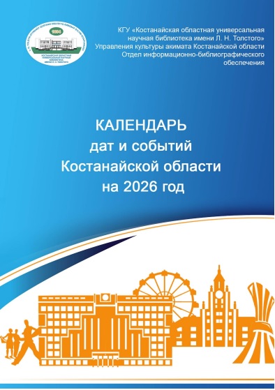 Отдел информационно-библиографического обеспечения Костанайской областной универсальной научной библиотеки им. Л. Н. Толстого выпустил 53-й выпуск «Календаря дат и событий Костанайской области на 2026 год». В пособие включена информация о важнейших исторических событиях и об известных юбилярах года, внѐсших большой вклад в развитие литературы, искусства, культуры, просвещения, науки, техники и экономики Костанайской области. Вы можете скачать календарь дат и событий Костанайской области на 2026 год и полностью с ним ознакомиться.